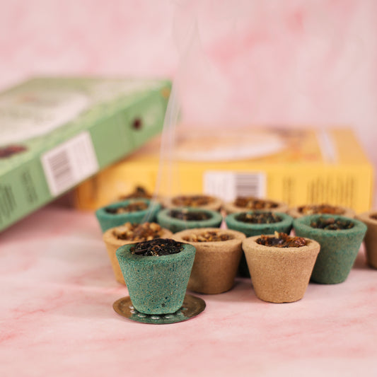 Dhoop sticks, commonly used in Hindu rituals and ceremonies, release a dense and fragrant smoke, enveloping the sacred space with a rich aroma. Incense bricks are specially designed incense, offering a unique way to release their aromatic smoke.