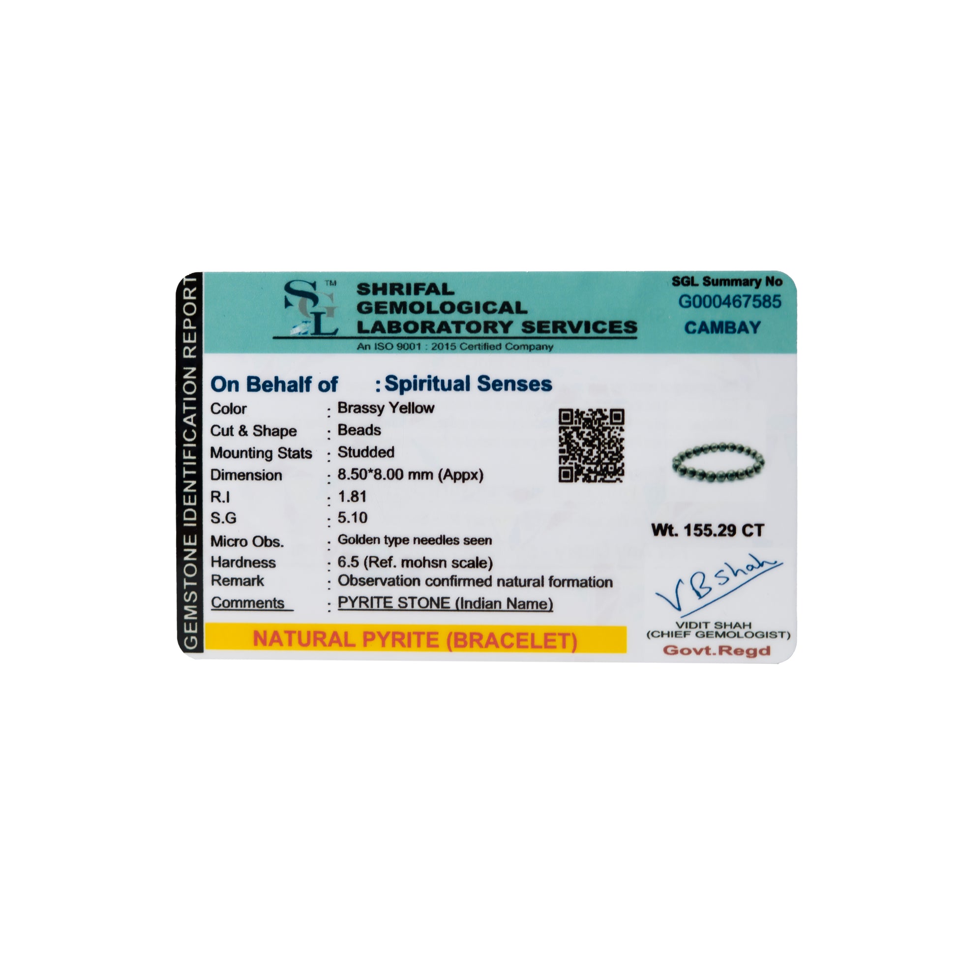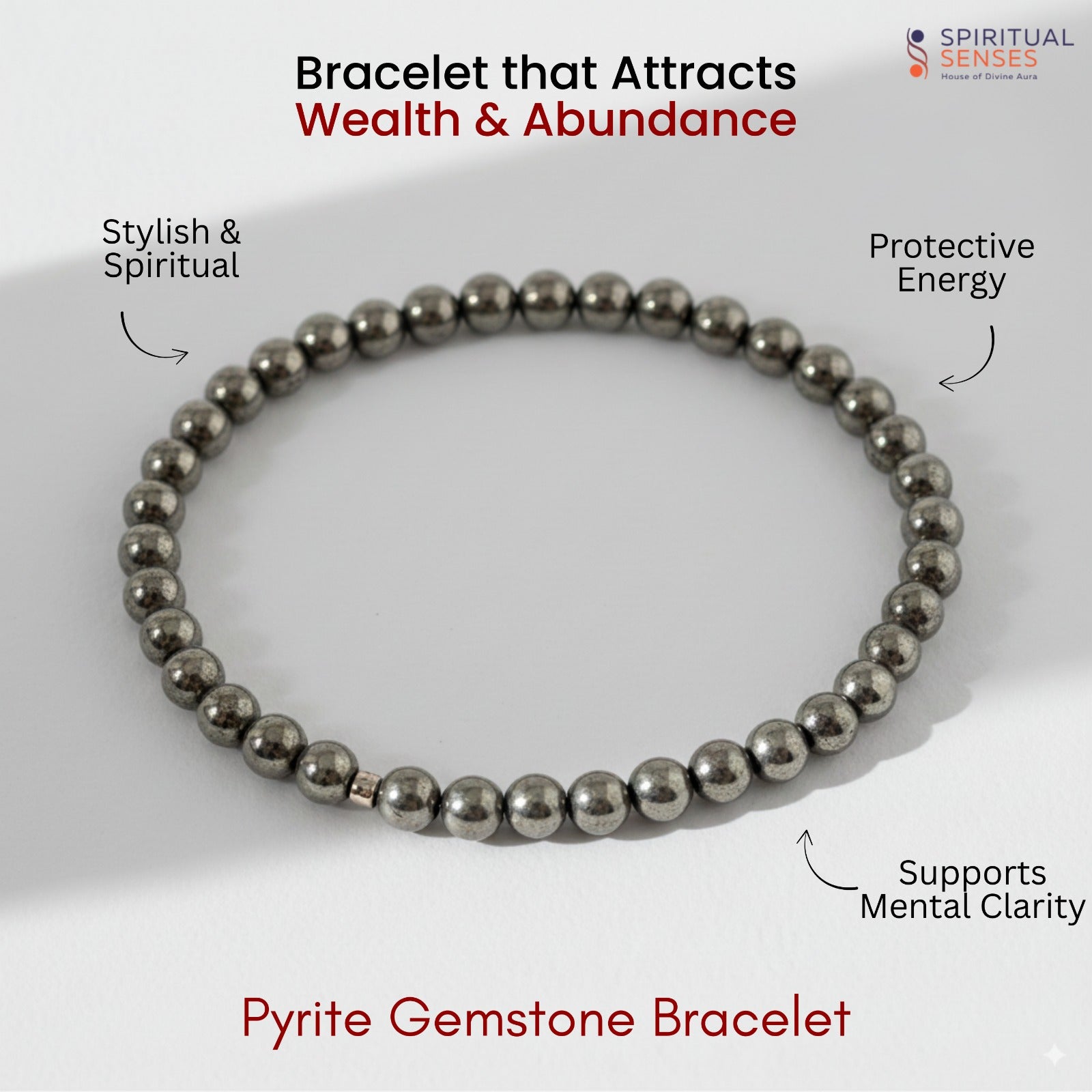 Harness the energy of prosperity and protection with our Pyrite Bracelet, a powerful crystal accessory crafted from genuine, lab-tested Pyrite stones. Known as “Fool’s Gold”, Pyrite has been valued for centuries as a symbol of wealth, abundance, and positive energy.